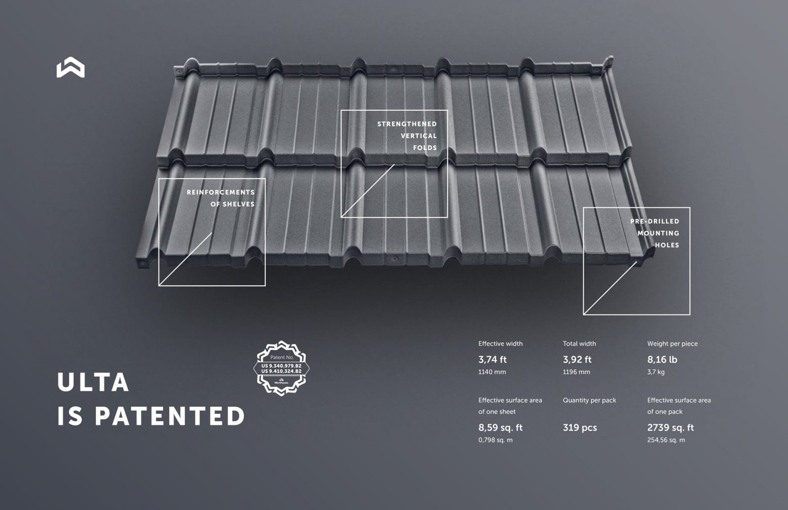 ULTA modular metal roof tiles raise roofing material to a higher standard. This innovative product makes installation simple and fast with pre-drilled holes. Its compact size on arrival is easier to ship and job-site friendly. ULTA offers durability for generations, with the highest levels of protection. These modular roofing tiles offer decades of trouble-free service.